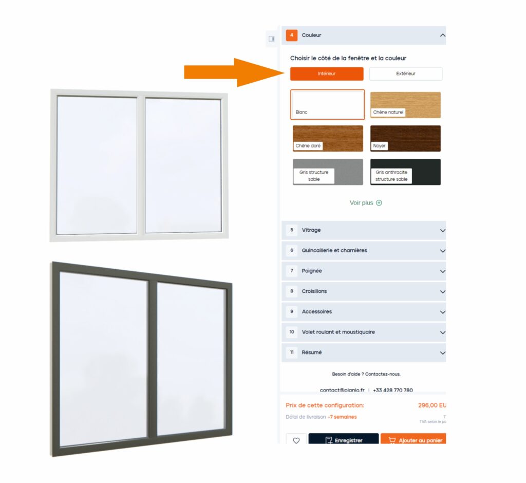 Comment choisir une fenêtre bicolore dans le configurateur de Planlo